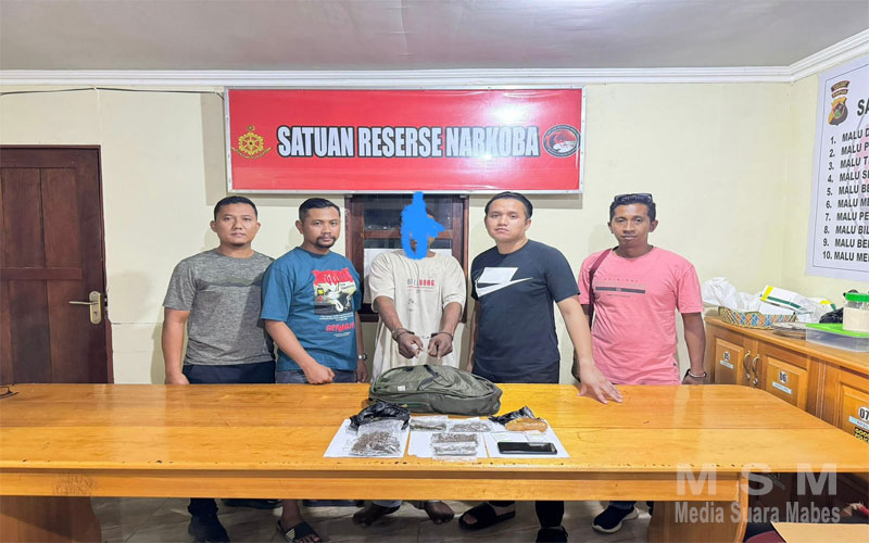 Lanjut Ipda. Exaudio menjelaskan, Barang Bukti milik terduga yang di amankan berupa, 1 Buah Tas Loreng, 5 paket bungkus sedang Narkotika jenis Ganja, 2 Paket bungkus Besar Narkotika jenis Ganja, 1 buah pembungkus Lakban warna coklat, 1 buah buah pembungkus Lakban warna Hitam, 1 pack plastik ukuran 5×3, 1 buah Handphone Merk Samsung Galaxy A 15.