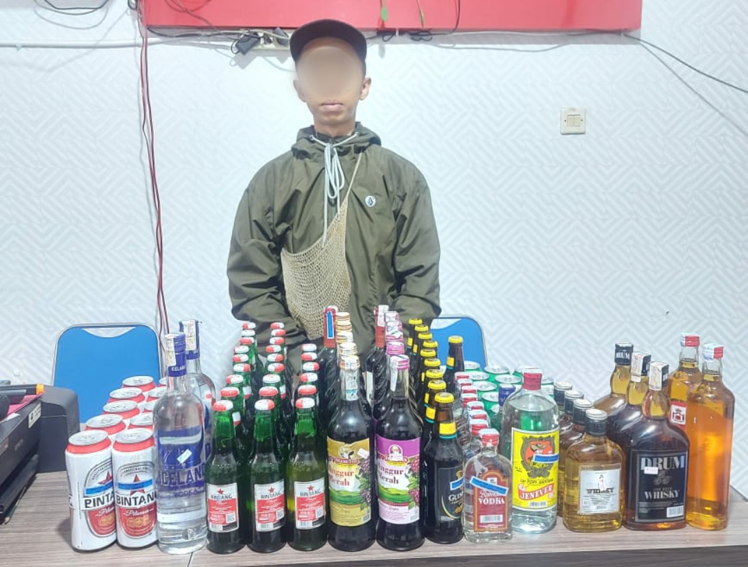 “Dimana dari hasil penangkapan, anggota mengamankan puluhan botol dan kaleng minuman keras berbagai merk dan satu unit sepeda motor Honda Scoopy yang merupakan alat bantu yang digunakan oleh pelaku,” ucapnya.