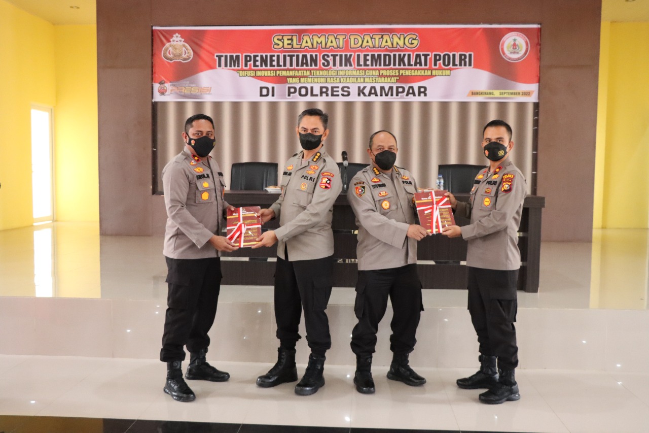Kapolres Kampar, AKBP. Didik Priyo Sambodo, SIK melalui Waka Polres Kompol Rachmat Muchamad Salihi, SIK, MH dalam sambutannya menyampaikan ucapan terima kasih atas kehadiran Tim Penelitian STIK Lemdiklat Polri di Mapolres Kampar dalam rangka Penelitian STIK.