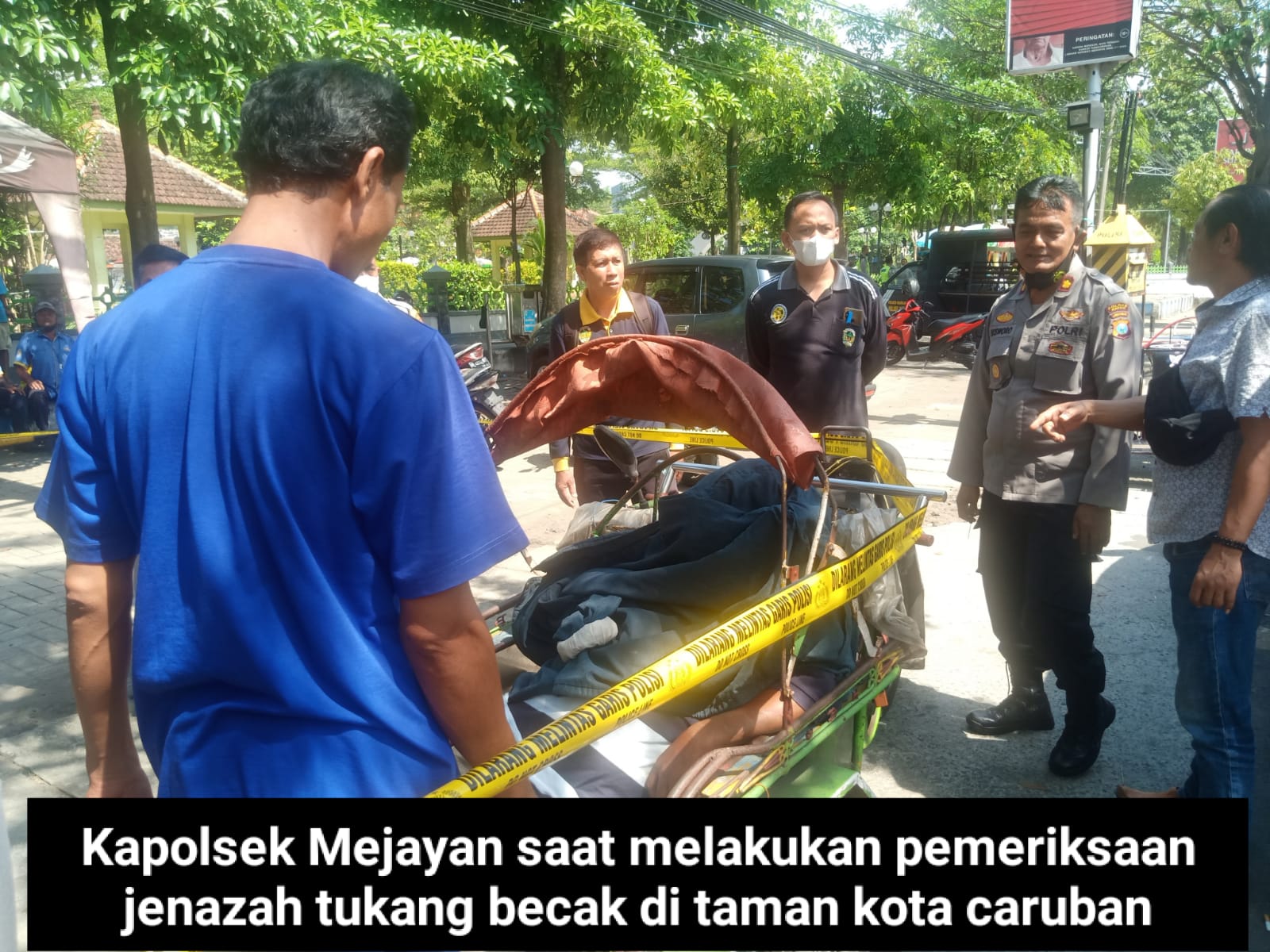 MediaSuaraMabes ,Madiun – Seorang pria tukang becak ditemukan sudah tidak bernyawa di depan taman kota caruban(3 juni 2022).