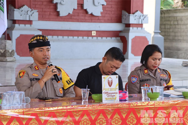 Dalam kesempatan tersebut, Kapolres I Dewa Gde Juliana S.I.K., S.H., M.I.K., menyampaikan apresiasi atas kehadiran seluruh peserta dari Desa Adat Kertajaya dan Kelurahan Pendem dalam kegiatan Jumat Curhat Menyame Braya. Beliau menekankan pentingnya acara tersebut sebagai wadah untuk menerima informasi langsung dari masyarakat tentang situasi kamtibmas yang melibatkan tindak pidana, terutama dalam kasus penipuan online.