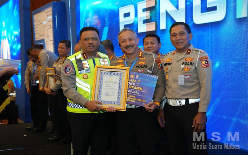 Penghargaan itupun diberikan langsung Kakorlantas Polri Irjen Pol Agus Suryo Nugroho kepada Dirlantas Polda Babel Kombes Pol Pringadhi Supardjan pada rapat evaluasi tugas bidang Regident dan Rakernis Gakkum Korlantas Polri tahun 2025 di Bandung, Jawa Barat.