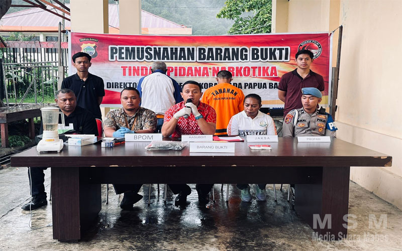 MediaSuaraMabes, Manokwari Papua Barat – Direktorat Reserse Narkoba Polda Papua Barat melaksanakan kegiatan pemusnahan barang bukti tindak pidana narkotika hasil dari beberapa perkara yang telah berhasil diungkap, Acara berlangsung di gedung Tahti Polda Papua Barat pada pukul 10.00 WIT, dipimpin langsung oleh Kasubdit 1 Ditresnarkoba, serta dihadiri oleh perwakilan Kejaksaan, Badan Pengawas Obat dan Makanan (BPOM), Bidang Propam Polda Papua Barat, dan penasihat hukum/pengacara tersangka, pada Jumat (19/9/2025).