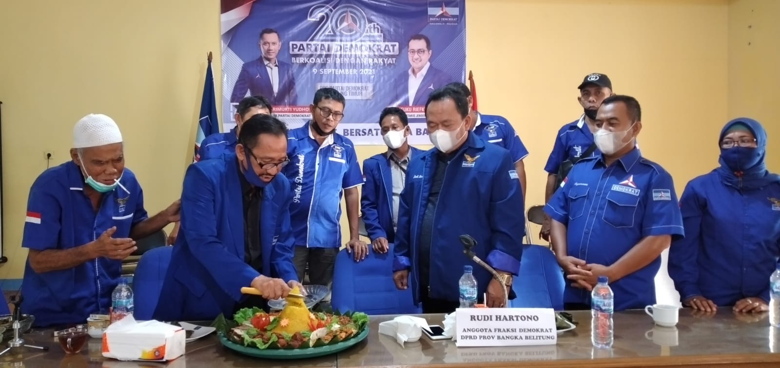 MediaSuaraMabes, BELITUNG TIMUR – DPC Partai Demokrat Belitung Timur memperingati hari jadi Partai Demokrat ke 20 yang dilaksanakan di ruang serba guna A1 Bukit Samak Manggar, diikuti oleh pengurus dan para kader serta simpatisan, pelaksanaan terbatas mengingat dimasa PPKN covid19, namun tidak mengurangi hidmad. Kamis, (9/9/2021)