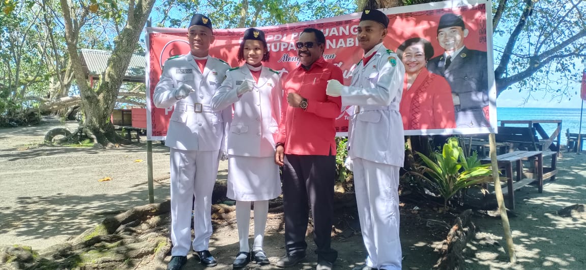 MediaSuaraMabes, Nabire – Dewan Pimpinan Cabang Partai Demokrasi Indonesia Perjuangan (DPC PDIP) Kabupaten Nabire, Papua, beserta kader partai dan simpatisan merayakan Ulang Tahun yang ke 49, 10 Januari 2022 di Pantai Budi Nabire. usai upacara, kegiatan dilanjutkan dengan pemotongan tumpeng dan kegiatan lainnya. Sanoba, 10 januari 2022.