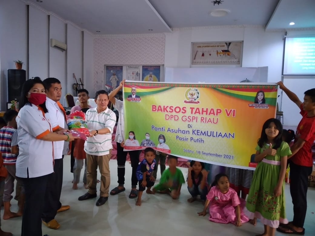 Bantuan Baksos ini berupa penyerahan pakaian bekas yang layak pakai beserta sembako. Kehadiran pengurus DPD GSPI Riau disambut hangat oleh pengurus panti asuhan beserta anak anak asuh yang ada di panti asuhan Kemuliaan tersebut.