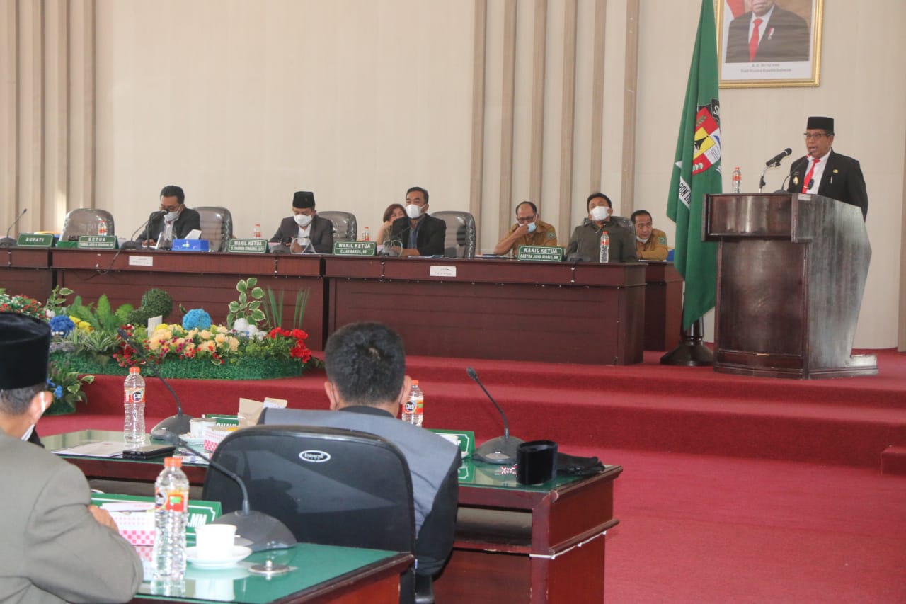 Hal itu disampaikan Fraksi-Fraksi DPRD Simalungun melalui juru bicara masing-masing fraksi dalam rapat paripurna yang di pimpin langsung oleh Ketua DPRD Simalungun Timbul Jaya Sibarani didampingi wakil-wakil ketua Samrin Girsang, Elias Barus dan Sastra Joyo Sirait, di gedung DPRD Simalungun Pamatang Raya, Sumut, Selasa 28/09/2021.