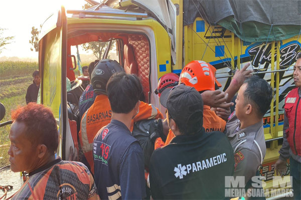 Kepala Kantor Basarnas Yogyakarta Kamal Riswandi mengatakan, Petugas siaga kami menerima laporan telah terjadi Laka lantas dengan korban terjepit body kendaraan.Kecelakaan antar 2 truk yang adu banteng mengakibatkan 3 orang terjepit body kendaraan.
