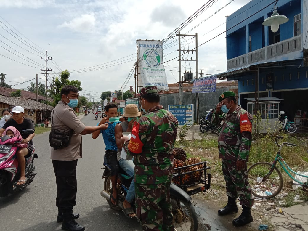 Selain bagi – bagi masker, sekalian memberi himbauan kepada warga agar mematuhi peraturan pemerintah.