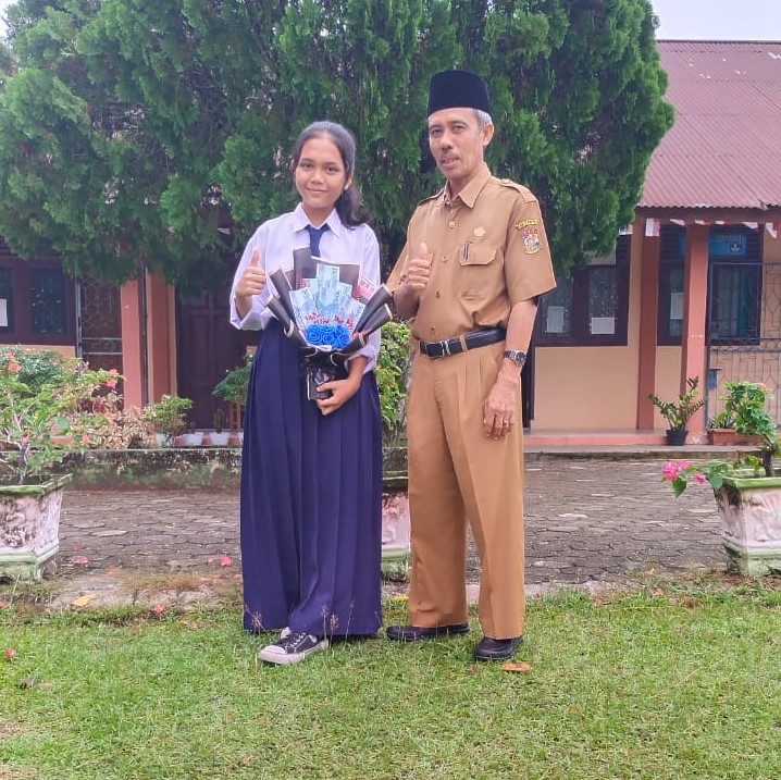 Media Suara Mabes, Tapung –-Upacara penyerahan penghargaan siswa Sekolah Menengah Pertama Negeri (SMPN) 4 Tapung, Kabupaten Kampar berhasil mendapatkan medali Emas dalam ajang Olimpiade Bahasa Indonesia.dan olimpiade IPS serta mendapat reward dari UPT SMPN 4 Tapung berupa bingkisan rangkaian bunga dan uang tunai pembinaan kepada peraih mendali.