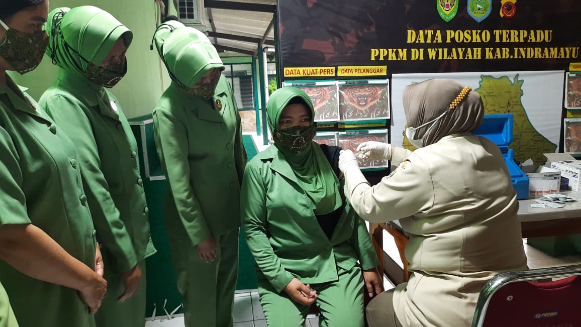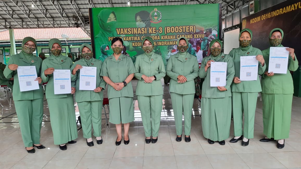 MediaSuaraMabes, Indramayu – Vaksinasi Ke 3 ( Booster) Kembali di gelar Kodim 0616 Indramayu bersama Persit Kartika Chandra Kirana Cabang XXVII, Jumat 18/02/2022.