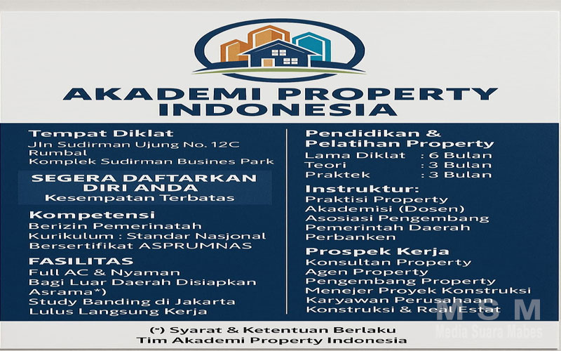 MediaSuaraMabes, Dumai – Mengantisipasi Potensi kerja sama Developer Kota Dumai dengan Akademi Property Indonesia (API) Asprumnas, maka dilakukan rekrutmen Agen Property untuk Daerah Dumai. Sehingga ditunjuk ibu Fatmawati,SE sebagai Leader Marketingnya. Demikian siaran pers Akademi Property Indonesia melalui Sekretaris Eksekutifnya, Selasa (23/09/2025).