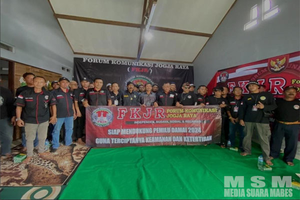MediaSuaraMabes, Yogyakarta – Jelang pesta Demokrasi 2024 mendatang, Forum Komunikasi Jogja Raya (FKJR) memastikan diri siap membantu pemerintah khususnya TNI dan Polri dalam menjaga keamanan dan ketertiban masyarakat (Kamtibmas) di Daerah Istimewa Yogyakarta.