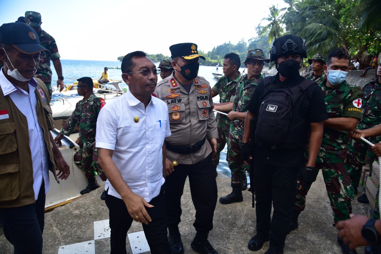 MediaSuaraMabes, POLDAMALUKU — Forum Komunikasi Pimpinan Daerah (Forkopimda) Maluku mengunjungi pengungsi Kariuw di Negeri Aboru, Kecamatan Pulau Haruku, Kabupaten Maluku Tengah. Kamis, (27/1/2022).