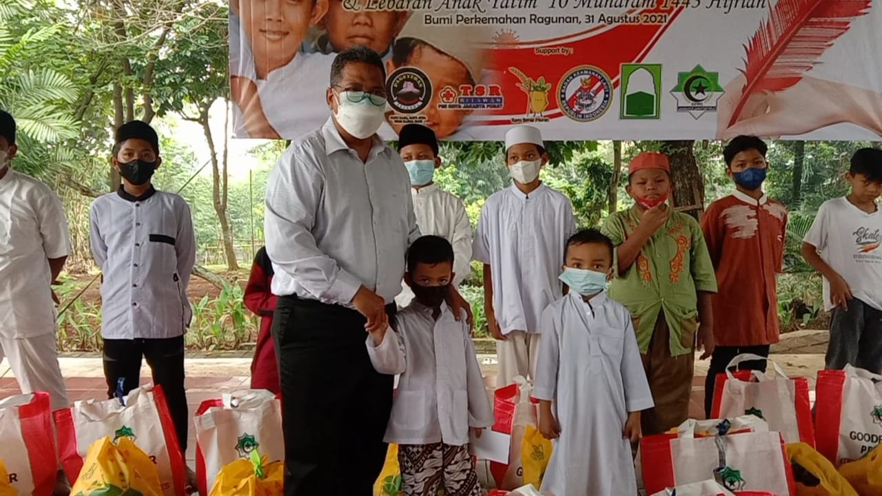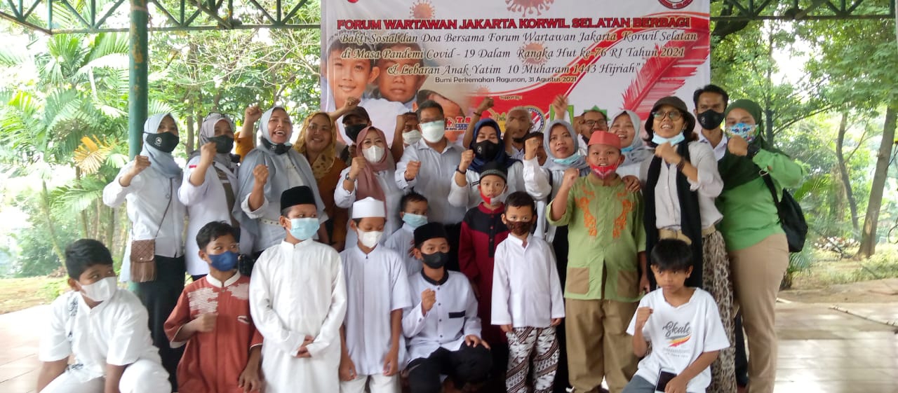 SuaraMabes, Jakarta – Dalam menyambut HUT ke 76 RI tahun 2021 dan merayakan Lebaran Anak Yatim 10 Muharam 1443 H Forum Wartawan Jakarta Korwil Jakarta Selatan berkolaborasi dengan Paguyuban Ps Minggu Legenda, Bakamla RI, Ratu Beras Murah, Yayasan Islam An Nash, TSR Relawan PMI Jakarta Pusat, PB GPMI dan Walikota Jakarta Utara menggelar Bakti Sosial Santunan Anak Yatim sebanyak 11 orang anak dan Bagi Sembako untuk wartawan yang terdampak PPKM yang berlokasi di Bumi Perkemahan Ragunan (Selasa, 31 Agustus 2021).