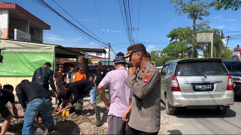 Sedangkan sebagian personel Polsek Singkawang Barat ada yang turut kerja Bhakti dan ada juga yang mengatur kelancaran arus lalu lintas di beberapa titik kerja bhakti sehingga tidak ada penyumbatan kendaraan selama Kerja Bakti berlangsung.