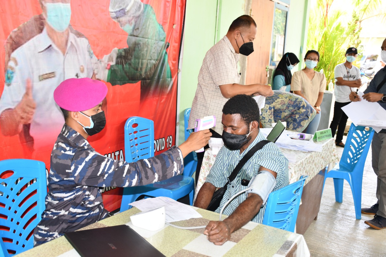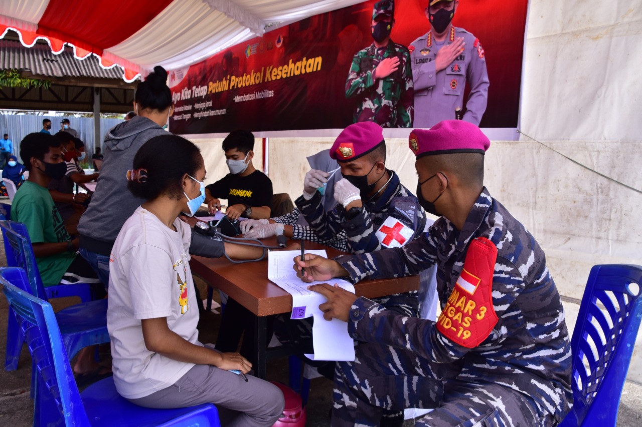 Asintel Danpasmar 3 Kolonel Mar Profs Dhegratmen SA selaku penanggung jawab kegiatan serbuan vaksinasi menjelaskan, dengan seringnya diadakan vaksinasi secara masal di tempat-tempat fasilitas pelayanan umum di seputaran Distrik Mariat diharapkan mampu menurunkan penyebaran virus Covid-19.