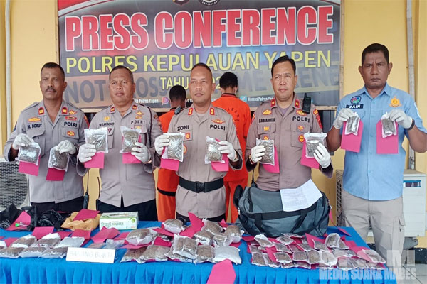 MediaSuaraMabes, Yapen – Memasuki bulan ketiga di tahun 2023 ini jajaran Polres Kepulauan Yapen berhasil mengungkap peredaran narkotika jenis ganja dengan total seberat 2.679,4 gram dari 2 kasus berbeda.