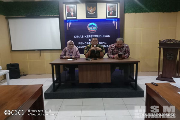 Kabid Pelayanan Pendaftaran Penduduk Retno Murtiningsih, yang didampingi Kabid Pemanfaatan Data dan Inovasi Pelayanan, Tulus Widodo, dan Kabid Pengelolaan Informasi Administrasi Kependudukan, Ashar Nazarudin, di Aula Dindukcapil. Rabu, (2/08/2023).