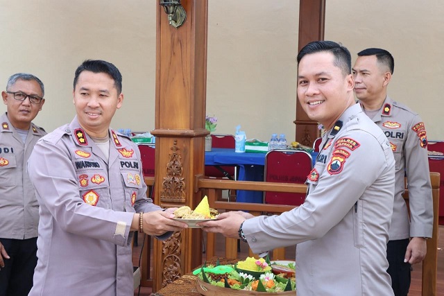 Kapolres Jepara AKBP Warsono, SH., SIK., MH didampingi Wakapolres Jepara Kompol Berry, ST., SIK, Pejabat Utama Polres Jepara, Personel Polres Jepara dan Taruna Akpol melaksanakan pemotongan tumpeng bersama rekan – rekan media Kabupaten Jepara.