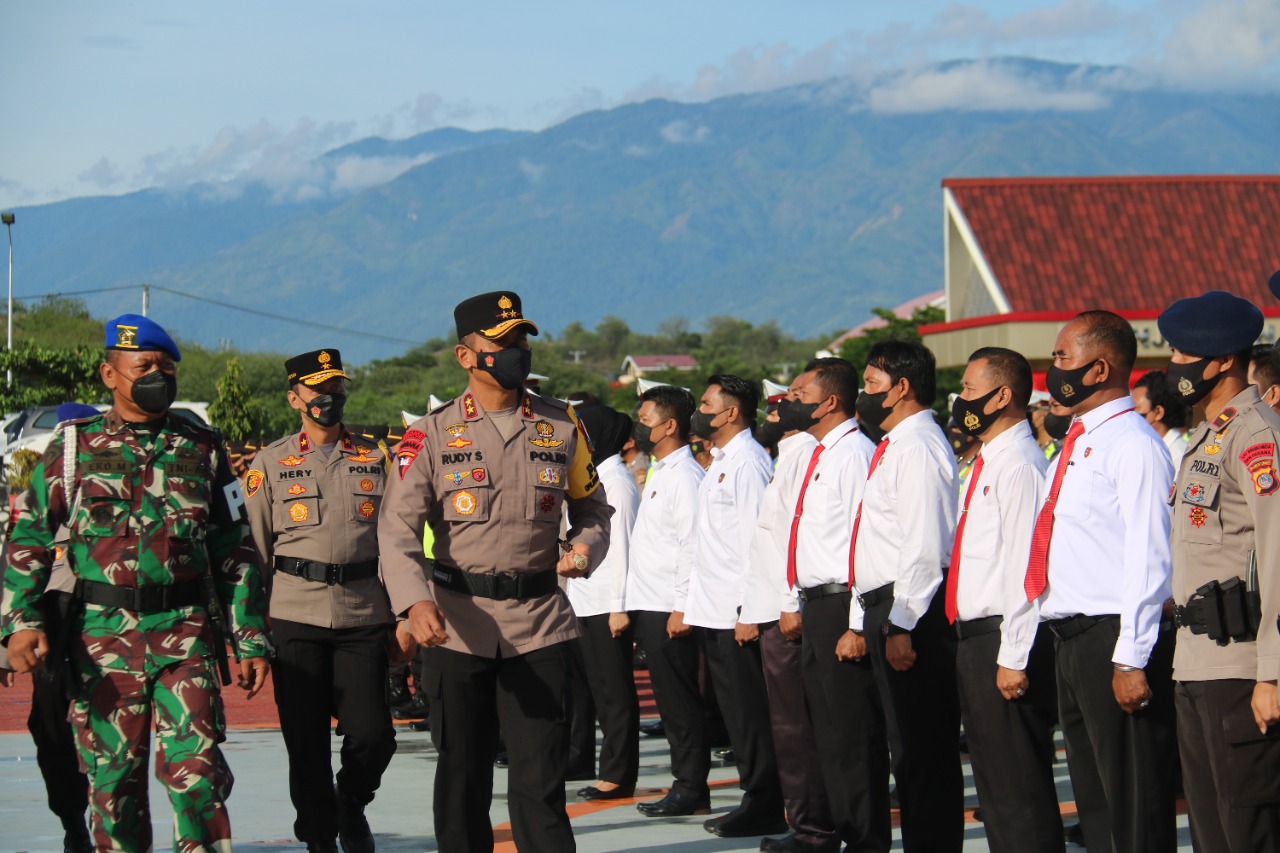 “saya berharap dan menekankan kepada seluruh personil yang terlibat dalam pelaksanaan operasi Patuh Tinombala 2022 untuk lebih mengedepankan tindakan yang humanis,” tegas Irjen Pol. Rudy Sufahriadi saat memimpin Apel.