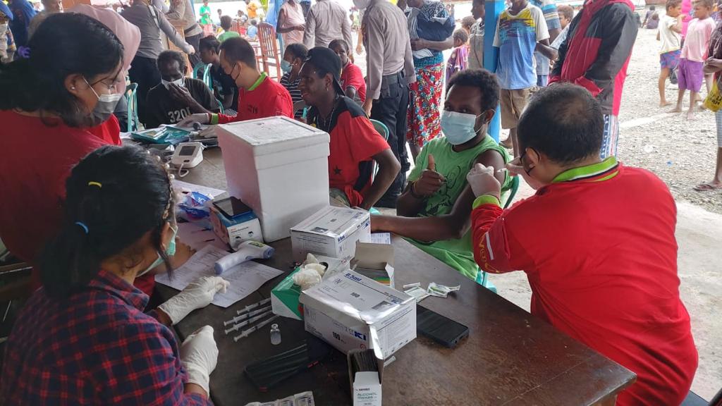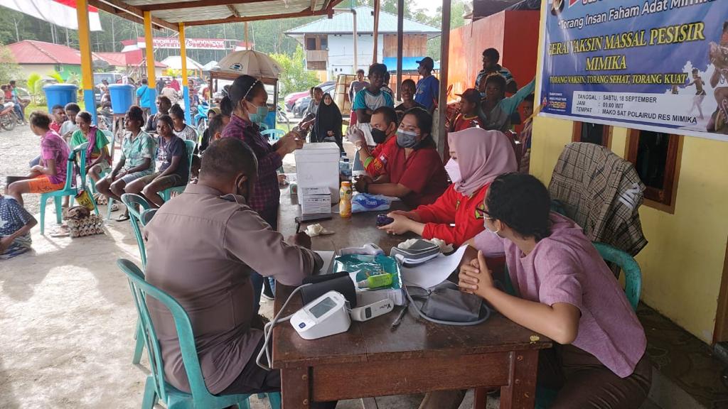 Kegiatan Vaksinasi yang di prakarsai oleh Kementerian Kesehatan Republik Indonesia, Pemerintah Daerah Kabupaten Mimika, Polres Mimika, Kodim 1710 Mimika, BPBD Kabupaten Mimika serta satuan tugas penanganan covid-19 Kabupaten Mimika dilakukan dengan tujuan agar masyarakat bisa hidup sehat.