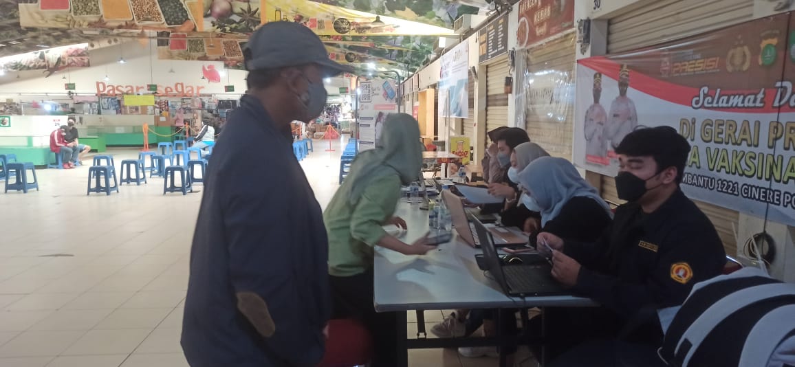 Antusias masyarakat terlihat sangat besar dengan bertambahnya jumlah yang akan divaksinasi khususnya di Gerai Vaksinasi Merdeka Cinere, Depok.