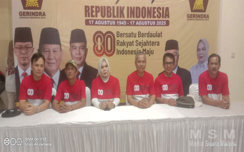 Senin 18 Agustus 2025 .//Dalam Penyampaian Ketua DPC,(H. Pipih Supriati Menerangkan Ke awak Media, alhamdulilah Hari ini Bisa Mengadakan berbagai acara,Sesuai arahan kami dari partai Gerindra dapat kembali hadir di tengah Masyarakat untuk Memberikan pelayanan kesehatan gratis,dan memberikan paket Sembako Sebagai bentuk kepedulian kami.