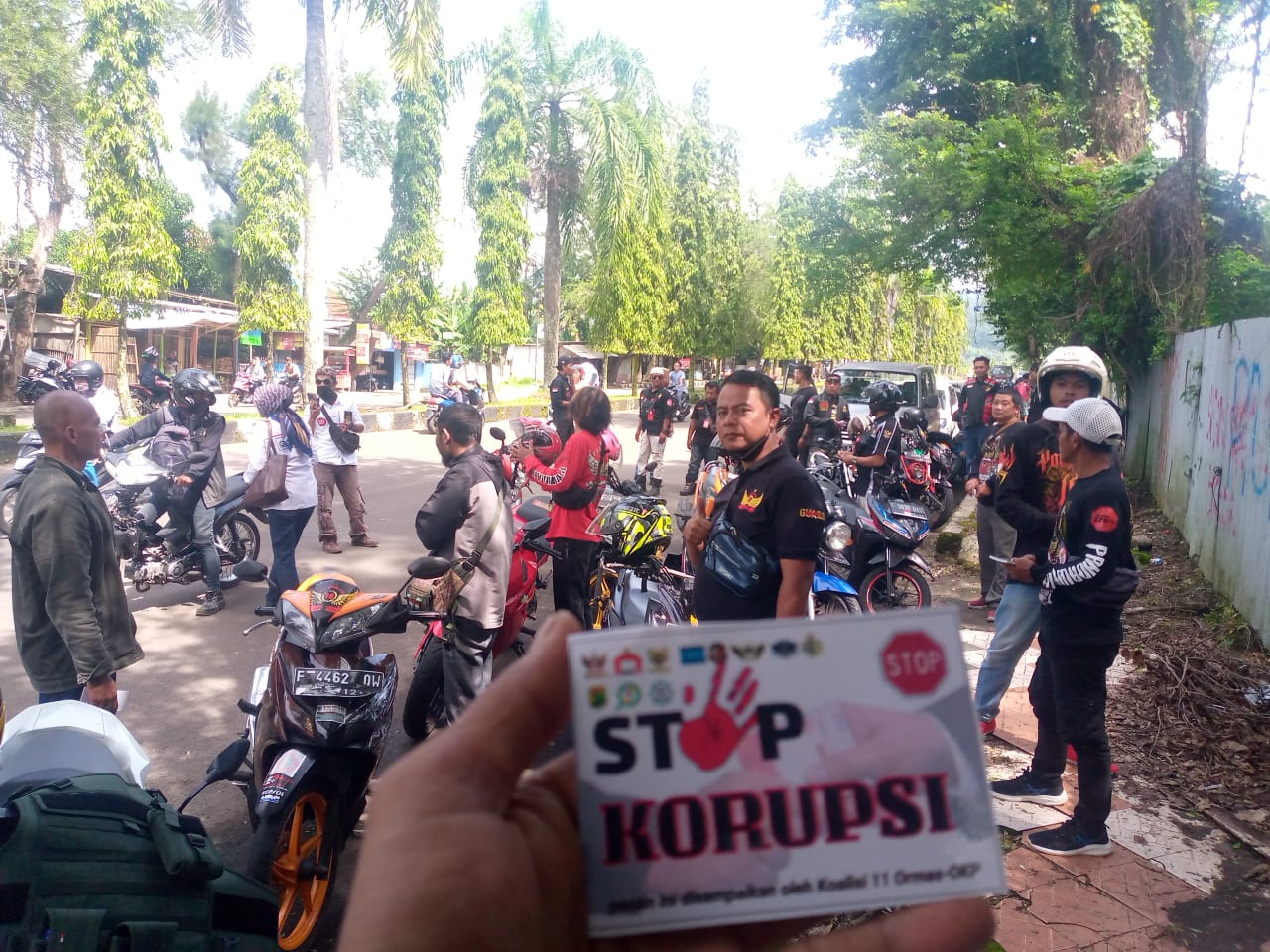 Gebyar Hakordia yang dilakukan 11 Koalisi Ormas-OKP kali ini cukup menohok dari pesan sticker yang disebarluaskan. Selain pesan “Stop Korupsi”, ada juga pesan lain yang berbunyi “Ingat Tuhanmu Ingat Anak Istrimu KORUPSI ITU HARAM”.
