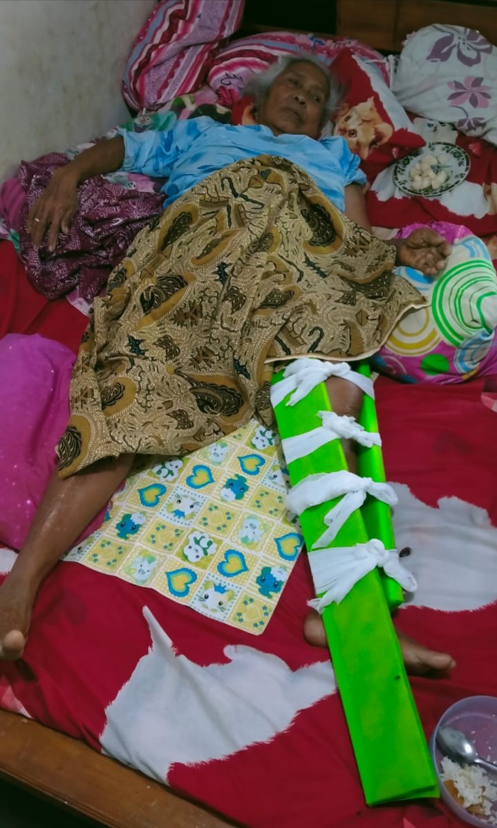 Ibu Sutinah yang mengalami patah tulang kaki karena terpeleset saat mau ke kamar mandi.
