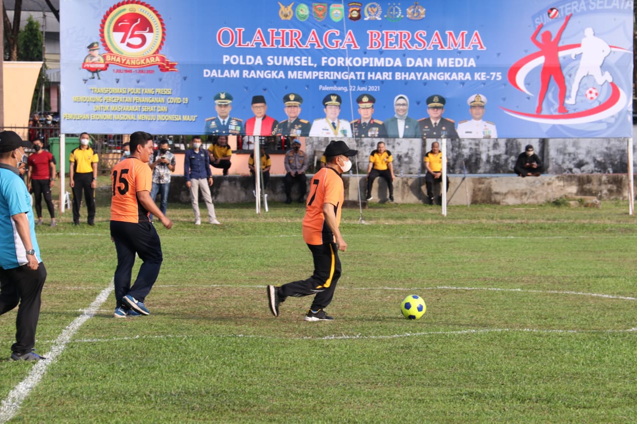 Pertandingan persahabatan, dalam rangka HUT Bhayangkara ke-75 di lapangan Sepak Bola Pakri Palembang Selasa (22/06/2021), Begitu pula dalam pertandingan olahraga volley ball, tim yang digawangi Gubernur Sumsel H Herman Deru, berhasil menekuk tim besutan Firdaus Komar, dengan skor telak 2-1.