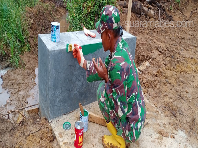 “Dengan dibantu masyarakat, sebagian di antara mereka terlihat ada yang mengecat, adapun cat yang digunakan berwarna putih, ada yang menyapu, serta ada pula yang membersihkan sisa-sisa potongan kayu di sekitar gorong-gorong,” papar Dan SSK TMMD.(“)