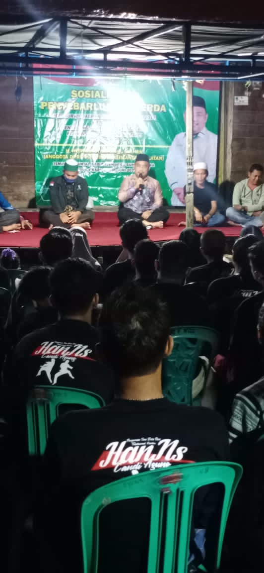 MediaSuaraMabes, HULU SUNGAI UTARA-Ketua Bapemperda di Dewan Perwakilan Rakyat Daerah (DPRD) Provinsi Kalimantan Selatan H.Hormansyah S.Ag.SH.MH menggelar Sosialisasi Peraturan Daerah Nomor 10 tahun 2014 tentang Penyelenggaraan Keolahragaan