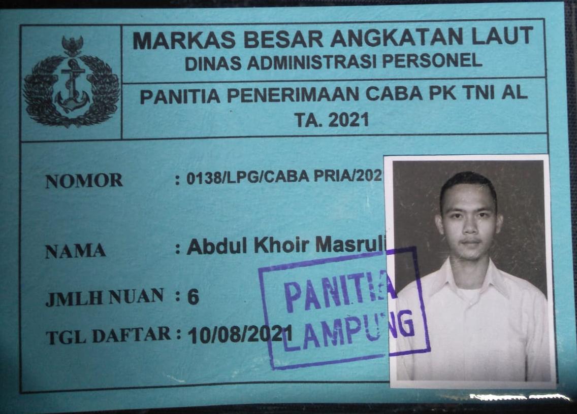 Namun, kesempatan untuk mengabdi masih tertunda untuknya. Beberapa waktu lalu ketika ada pembukaan pendaftaran, dirinya mencoba kembali mendaftar di Calon Anggota TNI AL dengan Nomor 0138/LPG/CABA PRIA/2021 dengan tanggal daftar 10/08/2021. Tak kenal putus asa, demi keinginannya untuk mengabdi kepada Negara dan membuat bangga sang bunda yang sudah tiada, ia terus berusaha mengejar cita-citanya. Hal itu disampaikan nya kepada media ini, dan ditanya apa motivasinya untuk ikut daftar sebagai calon anggota TNI AL, ia mengatakan,”