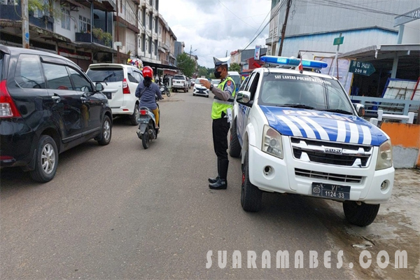 Satlantas Polres Ketapang menempatkan beberapa personilnya dibeberapa titik pertigaan atau perempatan yang sering terjadi kemacetan dengan mengatur arus lalulintas kendaraan yang melintasi lokasi tersebut.