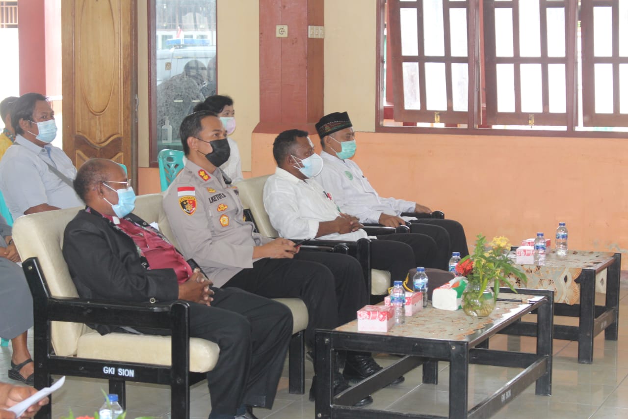 Yang dihadiri Kapolres Nabire AKBP I Ketut Suarnaya, SIK, SH, Kepala Kantor kementrian Agama yang diwakiki Kasubag TU Kantor Kementrian Agama Kab. Nabire Robert Wopairi, S.Th, Ka Kesbangpol yang diwakili Kabid Hubungan Legislatif Kesbangpol Nabire Daniel F. Sawaki, S. Sos, Ketua FKUB Nabire Pdt. Junus Mbaubedari, S.Th, Anggota FKUB Nabire dan Perwakilan masing – masing tokoh Agama di Kabupaten Nabire.