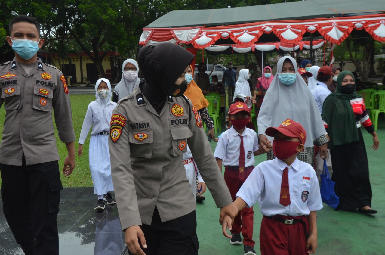 “Ini sebagai wujud Polri sebagai pelindung, pengayom, dan pelayanan kepada masyarakat. Jadi dengan hadirnya Polwan ini, anak-anak didampingi dan dibujuk agar tidak takut untuk di suntik vaksin,” ujar Karsum.