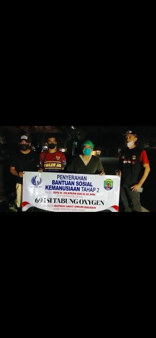 mewakili pemerintah Kabupaten menerima langsung 69 tabung isi oksigen medis bantuan dari Pak Haji Herman Baco yang di datangkan dari Tawau sore tadi,” ucapnya, saat dihubungi media ini, Kamis (12/08/2021).