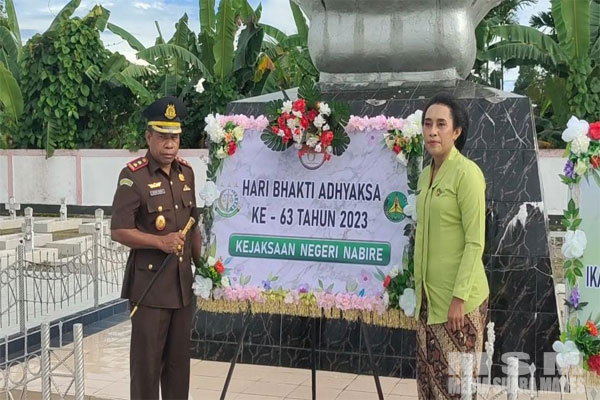 MediaSuaraMabes, Nabire – Bertempat di Taman Makam Pahlawan (TMP) Margalayu Nabire yang berlokasi di jalan Kusuma Bangsa Kabupaten Nabire Provinsi Papua Tengah, Pada Jumat, 21/07, 2023 , Kepala Kejaksaan Negeri Nabire Yedivia Rum, S.H,. M.H bersama Jajaran Kejari Nabire beserta Ketua Ikatan Adhyaksa Dharmakarini Daerah Nabire Ny. Dina Yedivia Rum dan anggota IAD Daerah Nabire melaksanakan kegiatan ziarah dan tabur bunga dalam rangka memperingati hari Bhakti Adhyaksa ke-63 dan HUT Ikatan Adhyaksa Dharmakarini XXIII tahun 2023.