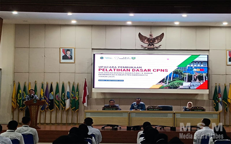 MediaSuaraMabes, Indramayu – Kepala Badan Kepegawaian dan Pengembangan sumber daya manusia Pemerintah Daerah Kabupaten Indramayu Mohammad Zaenal Muttaqin. ST. MM, didampingi Drs.Aan Endrajana.M.Si serta dihadiri kepala BPSDM Dr. Hery Antasari. ST. M. Dev. Plg, Pelaksanaan Pelatihan dasar dinyatakan di buka dan dihadiri seluruh peserta cpns sejumlah 123 orang. Jumat 25 September sampai dengan tanggal 1 Oktober 2025, Bertempat di Aula BPSDM Jl.Kolonel Masturi, KM, 3.5 Cipageran Kota Cimahi Provinsi Jawa barat.