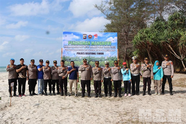 Penanaman pohon mangrove, dan Pohon cemara ini merupakan kali kelima yang dilakukan oleh Polres Belitung Timur. Untuk kali ini sebanyak 250 bibit ditanam.
