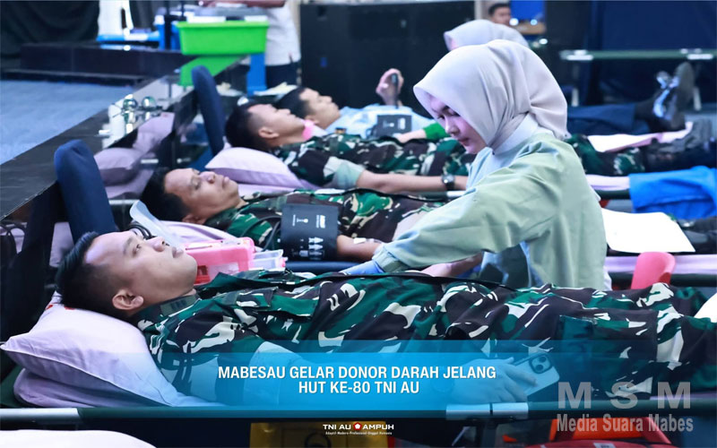 MediSuaraMabes, Jakarta – Menyambut peringatan Hari Ulang Tahun (HUT) ke-80, TNI Angkatan Udara (TNI AU) menggelar aksi kemanusiaan donor darah di Gedung Suharnoko Harbani Denmabesau, Mabesau Cilangkap, Senin (16/3/2026). Kegiatan ini merupakan wujud nyata kepedulian sosial prajurit “Sayap Tanah Air” dalam membantu sesama sekaligus mempererat kedekatan dengan masyarakat.