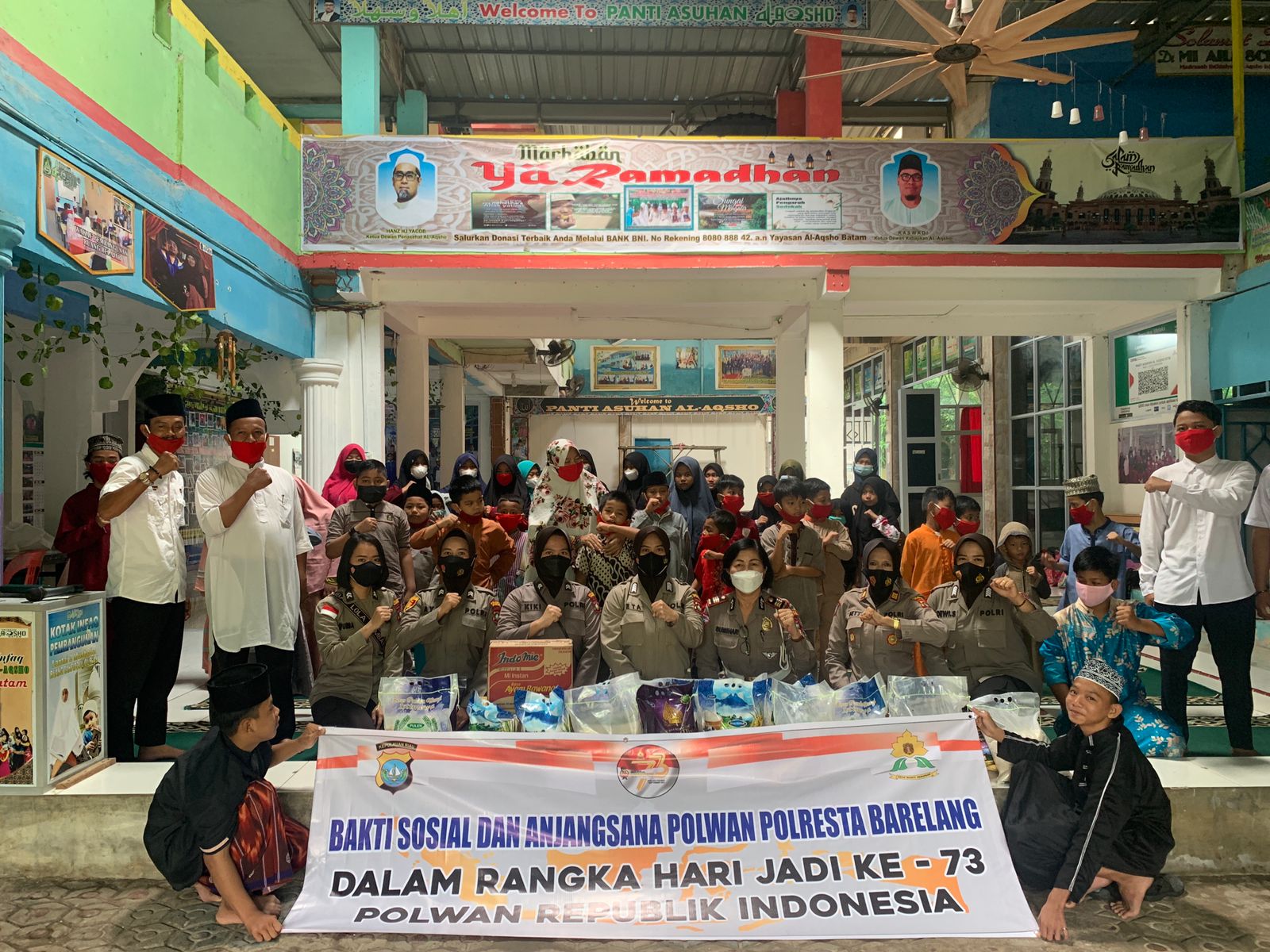 Kegiatan yang di pimpin oleh Wakasat Binmas AKP Betty Novia bersama Perwakilan Polwan Polresta Barelang membagikan Paket Sembako Sebanyak 70 Paket yang di serahahkan kepada Panti Asuhan Al – Aqsho, Kecamatan Bengkong, Panti Asuhan Asia Sehati, Kecamatan Sei Beduk dan Anjangsana kediaman Iptu (Purn) Asnaidar sebagai bentuk Kepedulian Polisi Wanita Kepada Masyarakat di tengah Pandemi Covid-19.