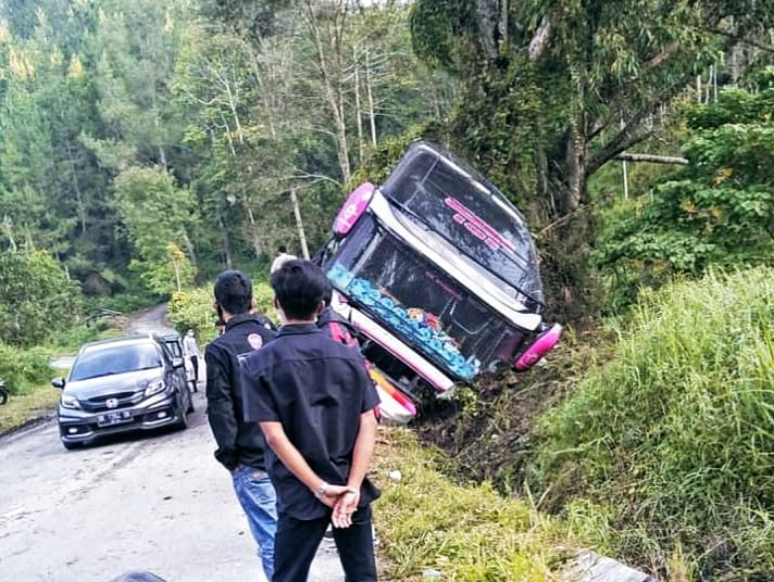 Suara Mabes ( Aceh). Polres Bener Meriah, Redelong- Bus penumpang Putra Pelangi alami Kecelakan lalulintas tunggal di jalan Bireuen-Takengon tepatnya di Kampung Relung Gunung, Kecamatan Wih Pesam, Kabupaten Bener Meriah, Aceh