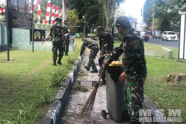 Terlihat, Dandim 1310/Bitung Letkol Arm Yoki Efriandi, M.Han., juga turut serta ikut melaksanakan pembersihan pangkalan bersama anggota.
