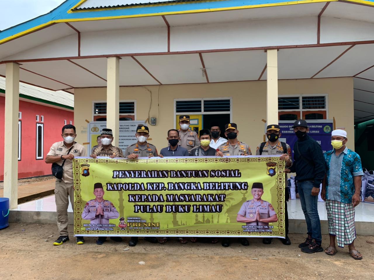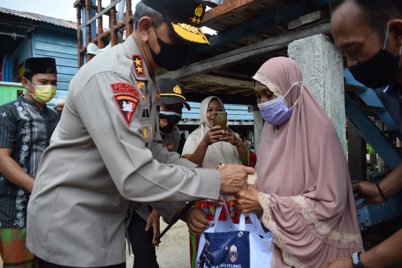 Selesai melaksanakan Bansos di Masjid At-Taqwa Pulau Buku Limau Kapolda yang didampingi Karo Ops, Dir Binmas, Kapolres Belitung Timur dan Kajari Belitung Timur melanjutkan membagikan dan menyerahkan Bansos kerumah-rumah warga sambil keliling Pulau Buku Limau untuk memberikan langsung Bansos kepada masyarakat Pulau Buku Limau.