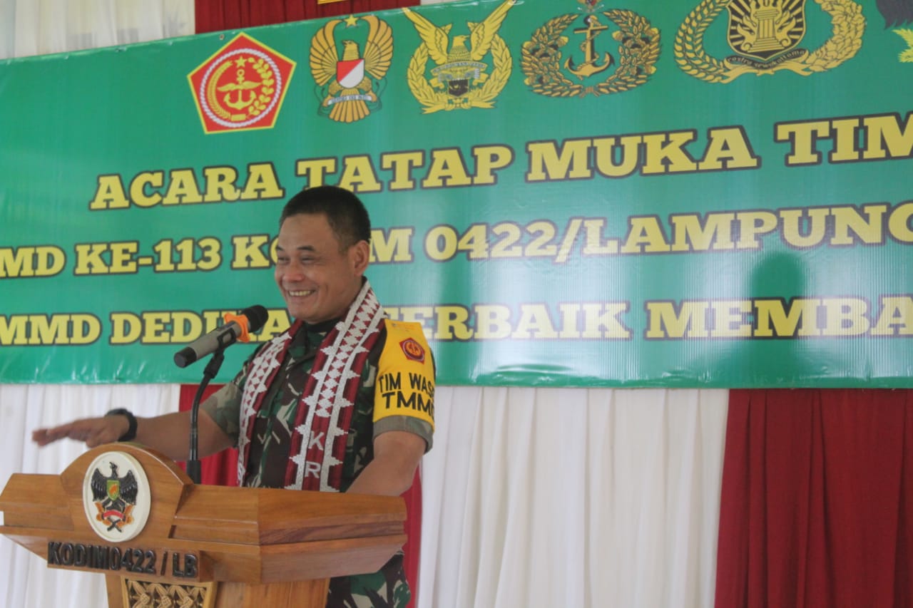 Dikesempatan tersebut Ketua Tim Wasev Brigjen TNI Irham Waroihan (Irsus Itjenad), dalam sambutannya menyampaikam, “Puji syukur kita panjatkan kehadirat Allah SWT atas limpahan rahmatnya kita dapat berkumpul ditempat yang berbahagia ini dalam acara Tatap Muka Tim Wasev dalam rangka kegiatan TMMD ke-113 Kodim 0422/LB “,
