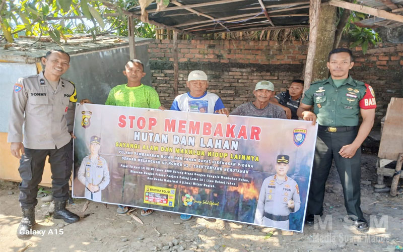 Dalam kegiatan ini, Bhabinkamtibmas AIPDA Sonny Afriyanto menyampaikan imbauan kepada warga agar tidak membakar hutan dan lahan sembarangan, terutama bagi mereka yang hendak membuka lahan baru atau membersihkan hasil panen.
