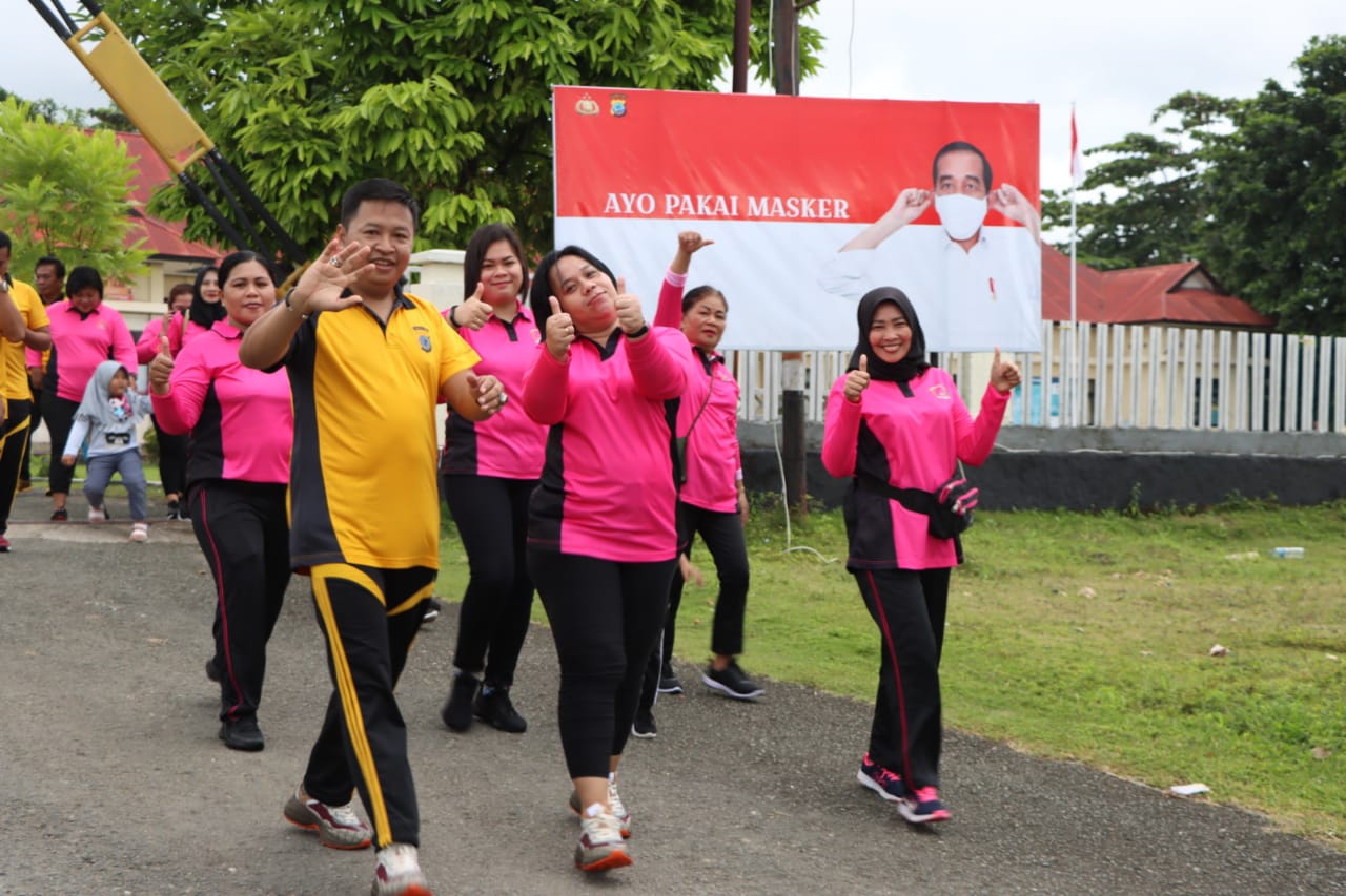 “Olahraga pagi untuk menjaga kebugaran dalam menunjang pelaksanaan tugas agar tetap maksimal juga untuk rajuk kebersamaan antara personil Polri dan Bhayangkari” ujar Kapolres