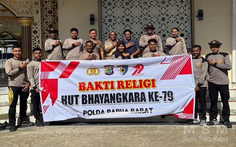 MediaSuaraMabes, Manokwari – Papua Barat Menyambut Hari Bhayangkara ke-79 tahun 2025, Inspektorat Pengawasan Daerah (Itwasda) Polda Papua Barat melaksanakan kegiatan Bhakti Religi di Masjid Al-Muhajirin, Kelurahan Anday, Kabupaten Manokwari, Minggu (22/6)